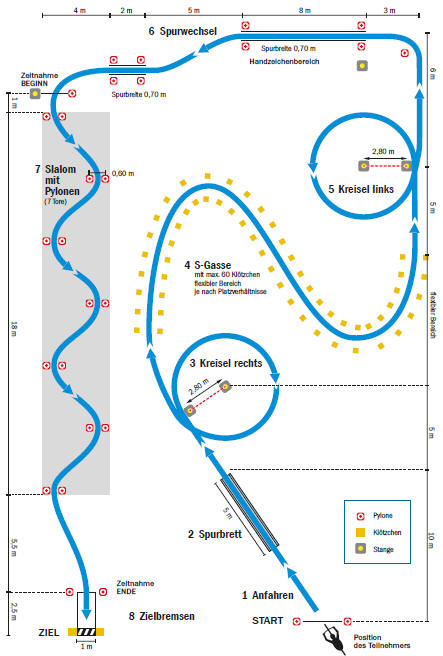 Der Teilnehmer soll zeigen, dass er auch in engen Spuren das Gleichgewicht